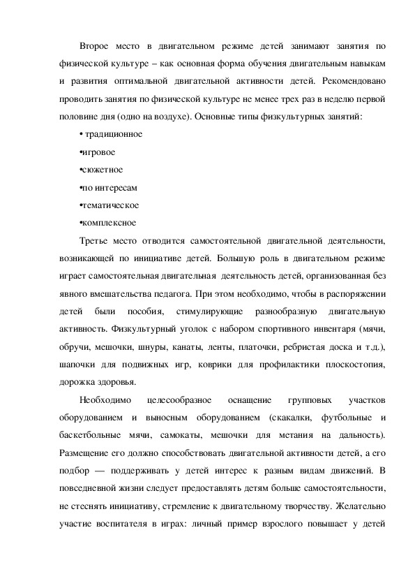 и развития оптимальной двигательной активности детей. Рекомендовано