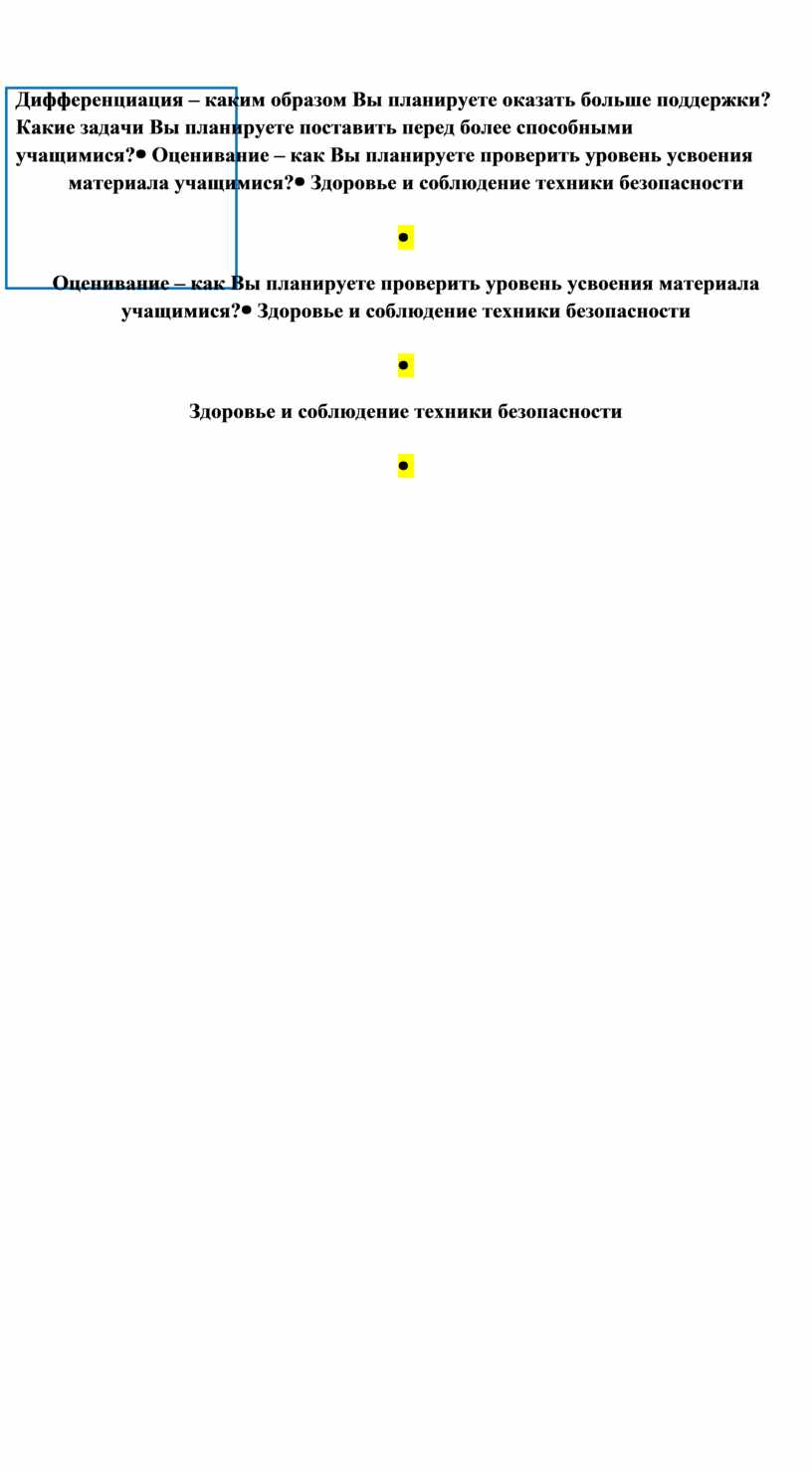 Дифференциация – каким образом Вы планируете оказать больше поддержки? Какие задачи Вы планируете поставить перед более способными учащимися? |