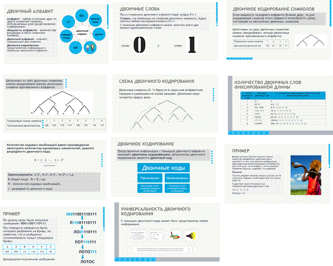 Цели урока: формирование представления о двоичном коде и двоичном кодировании символов; знакомство с понятиями «равномерный» и «неравномерный код», формирование умения кодировать и декодировать информацию с помощью равномерных и неравномерных кодов.
