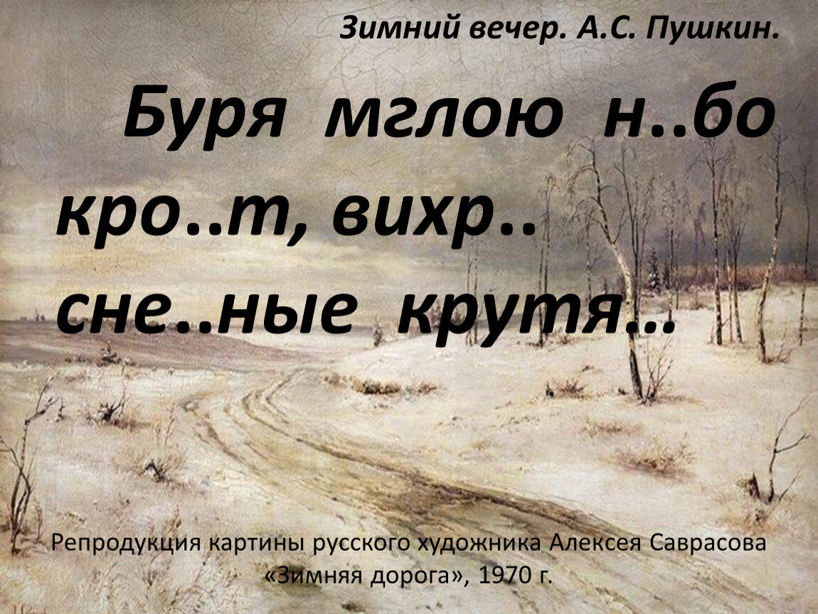 Буря мглою н..бо кро..т, вихр.. сне..ные крутя…