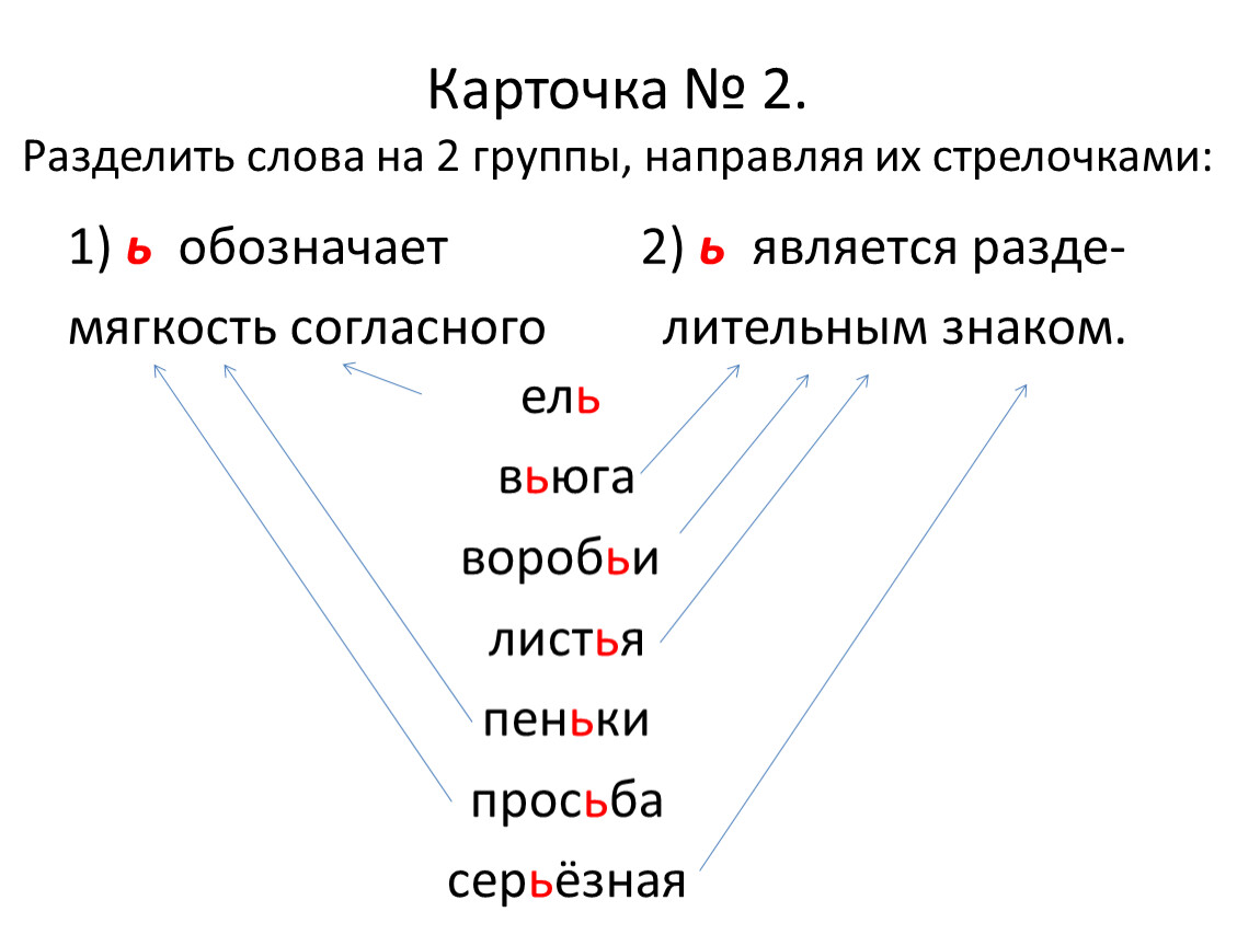 Карточка № 2.Разделить слова на 2 группы, направляя их стрелочками: