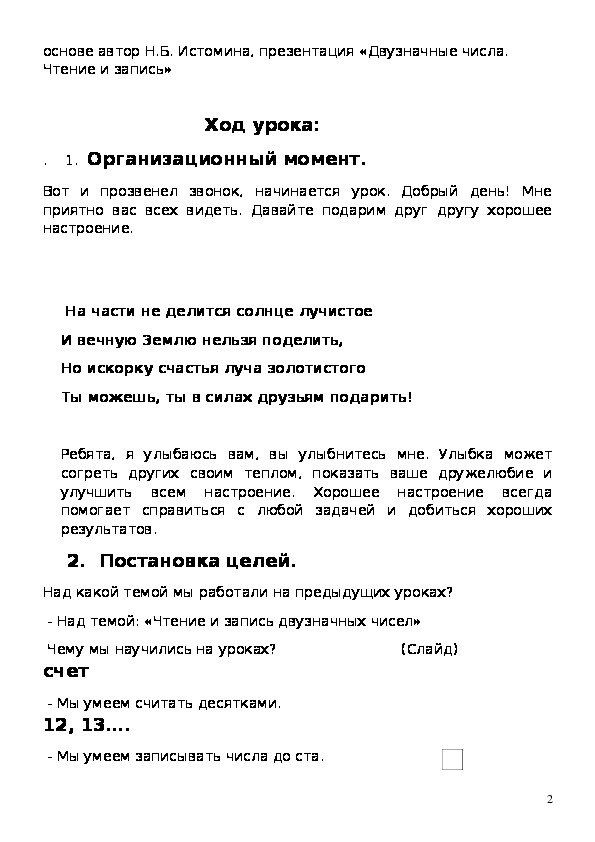 Урок математики в 1-ом классе. УМК