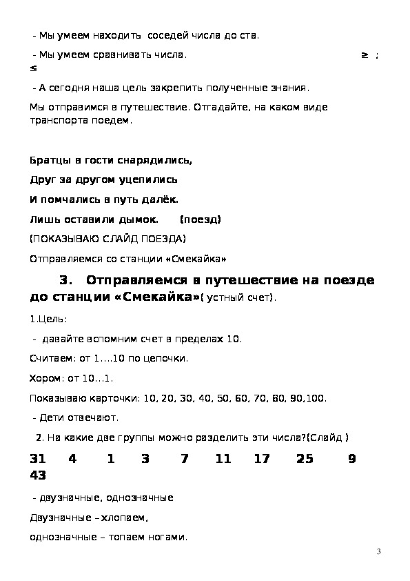 до станции «Смекайка»( устный счет).