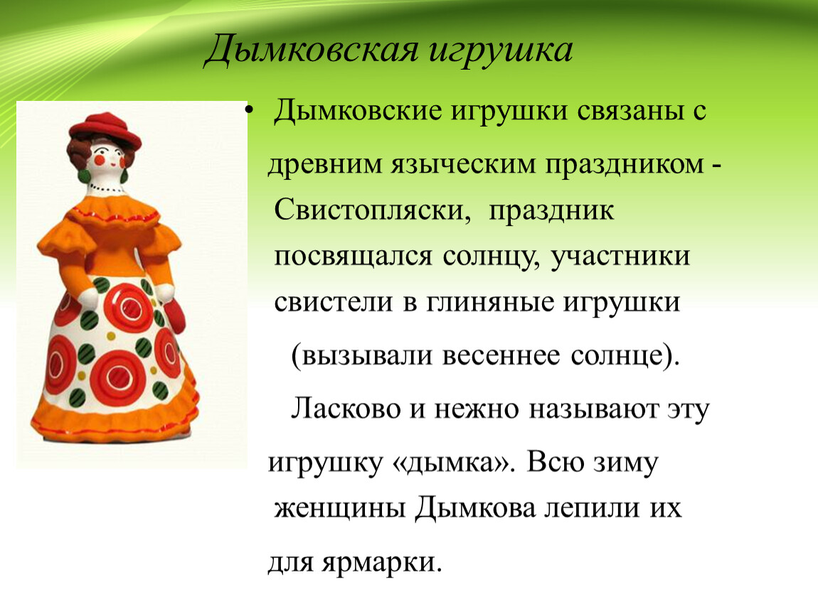 игрушку «дымка». Всю зиму женщины Дымкова лепили их