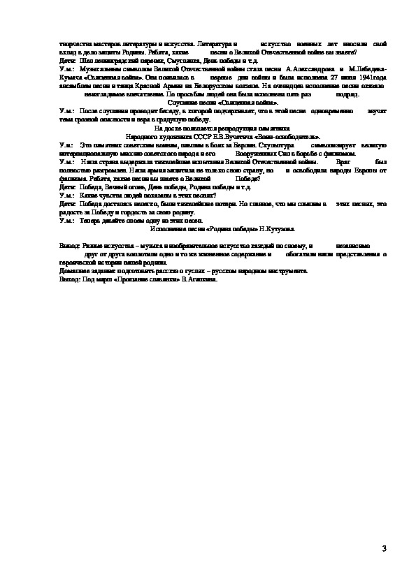 У.м.: Музыкальным символом Великой Отечественной войны стала песня А.Александрова и М.Лебедева