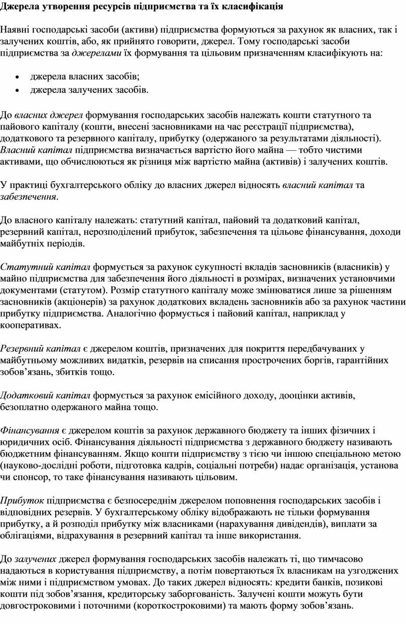 Наявні господарські засоби (активи) підприємства формуються за рахунок як власних, так і залучених коштів, або, як прийнято говорити, джерел. Тому господарські засоби підприємства за джерелами їх формування та цільовим призначенням класифікують на: