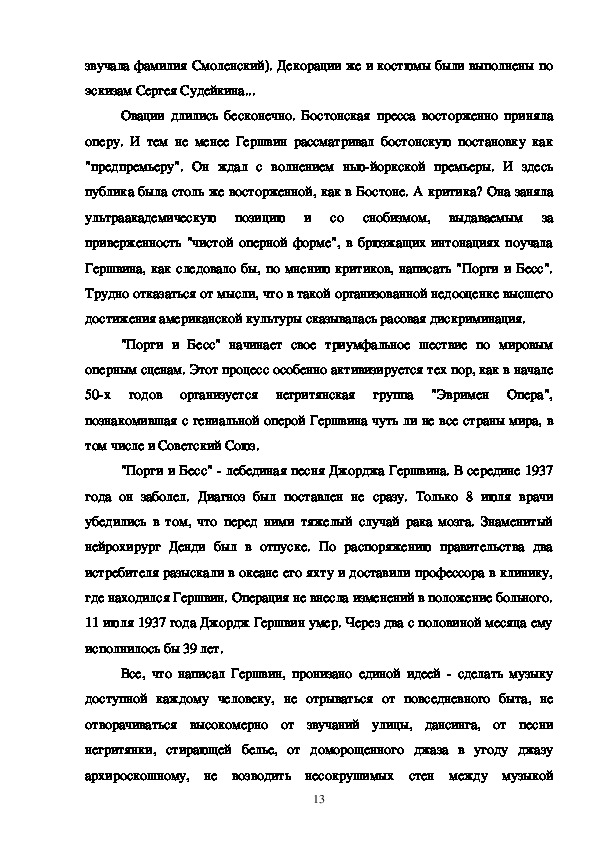 13классической и легкой. Эта идея и привела Джорджа Гершвина к созданию