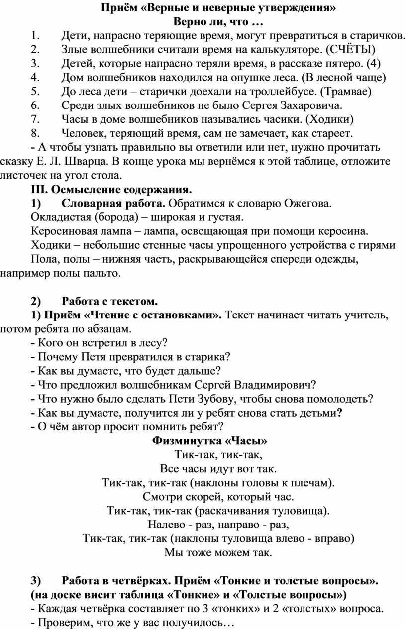 3) Работа в четвёрках. Приём «Тонкие и толстые вопросы».