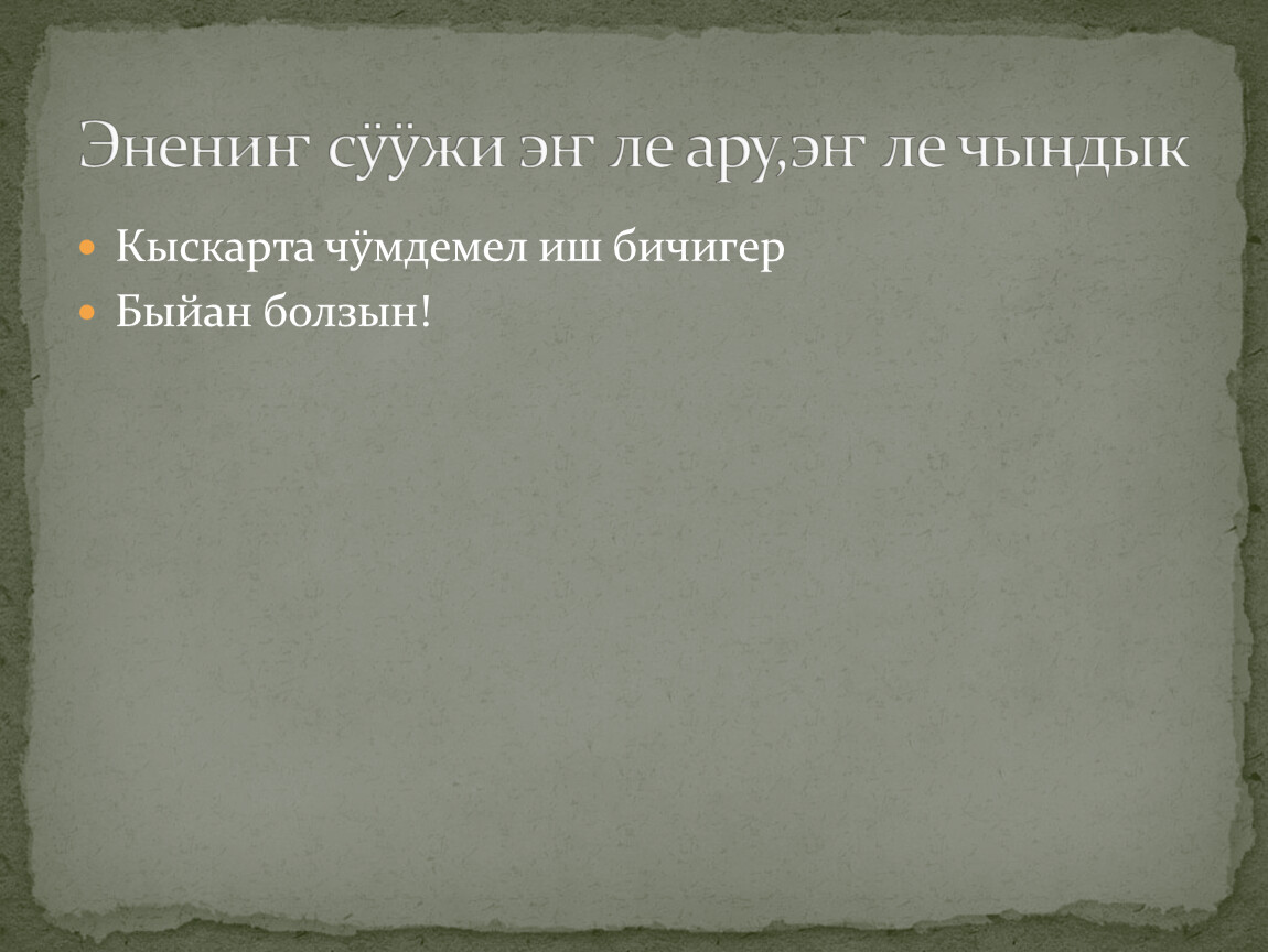 -Оору энеҥди кичееп болбозым-деп, канча катап айткан.