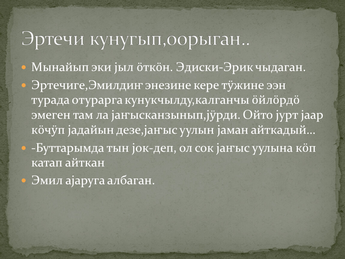 Мынайып эки јыл ӧткӧн. Эдиски-Эрик чыдаган.
