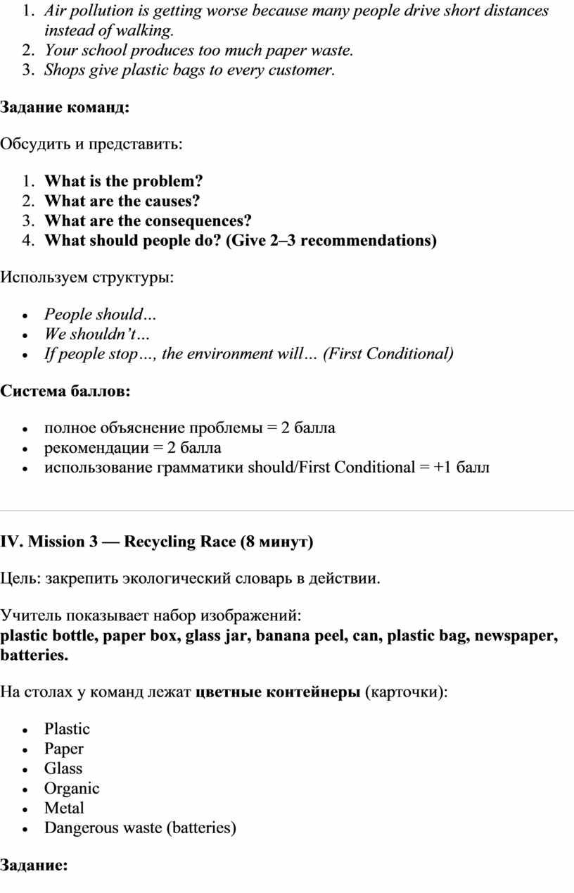 III. Mission 2 — Pollution Detective (10 минут)