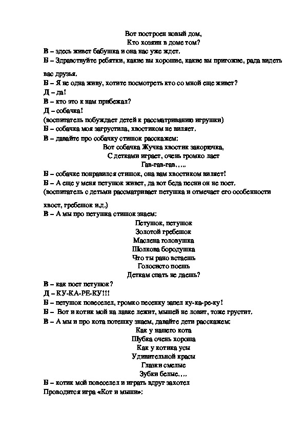 Б – А еще у меня петушок живет, да вот беда песни он не поет.