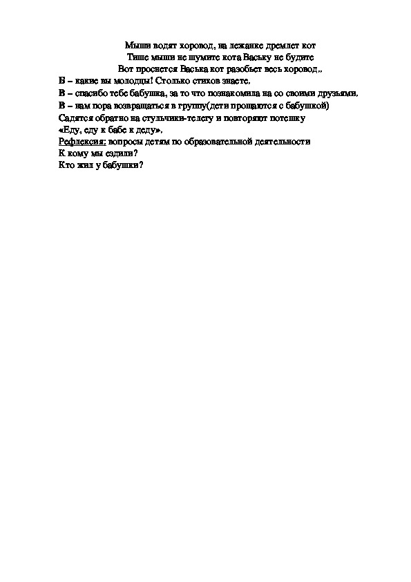 В – нам пора возвращаться в группу(дети прощаются с бабушкой)