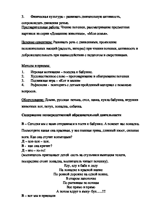 В – Сегодня мы с вами отправимся в гости к бабушке. А повезет нас лошадка.