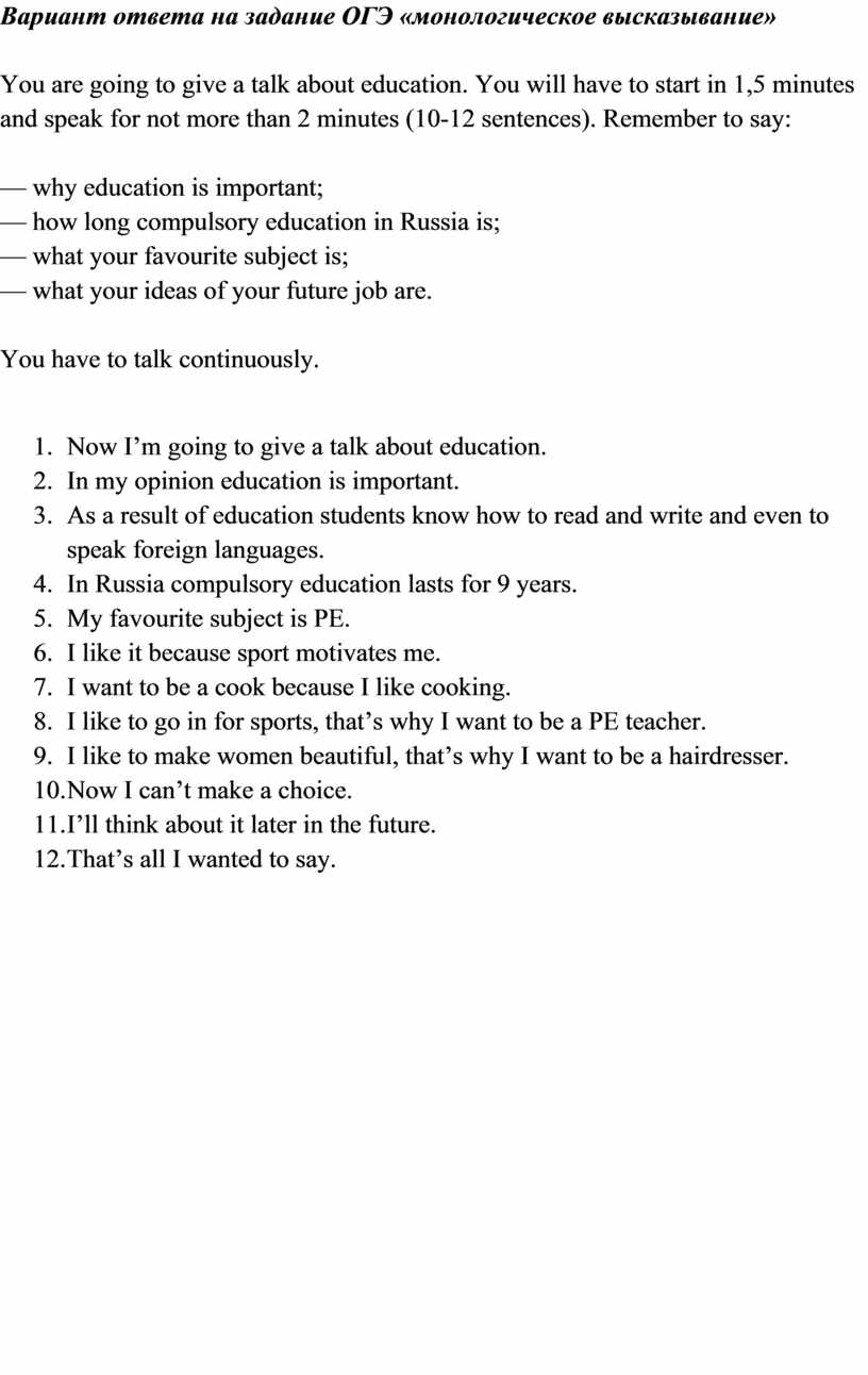 Вариант ответа на задание ОГЭ «монологическое высказывание»