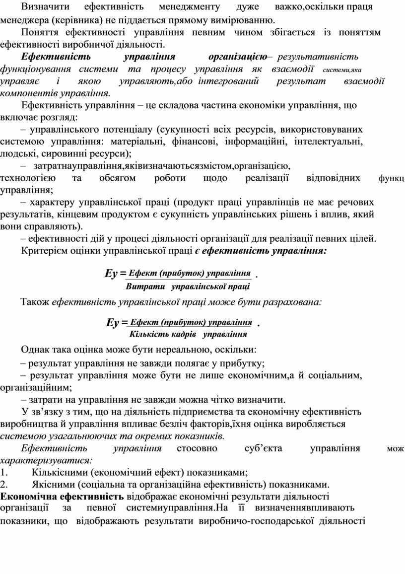Визначити ефективність менеджменту дуже важко,оскільки праця