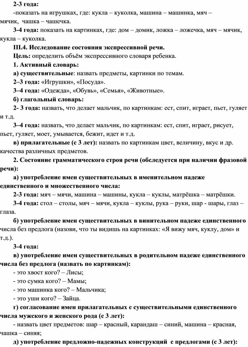 Цели: выявить состояние фонетической и фонематической стороны речи; состояние импрессивной и экспрессивной речи; состояние связной речи.