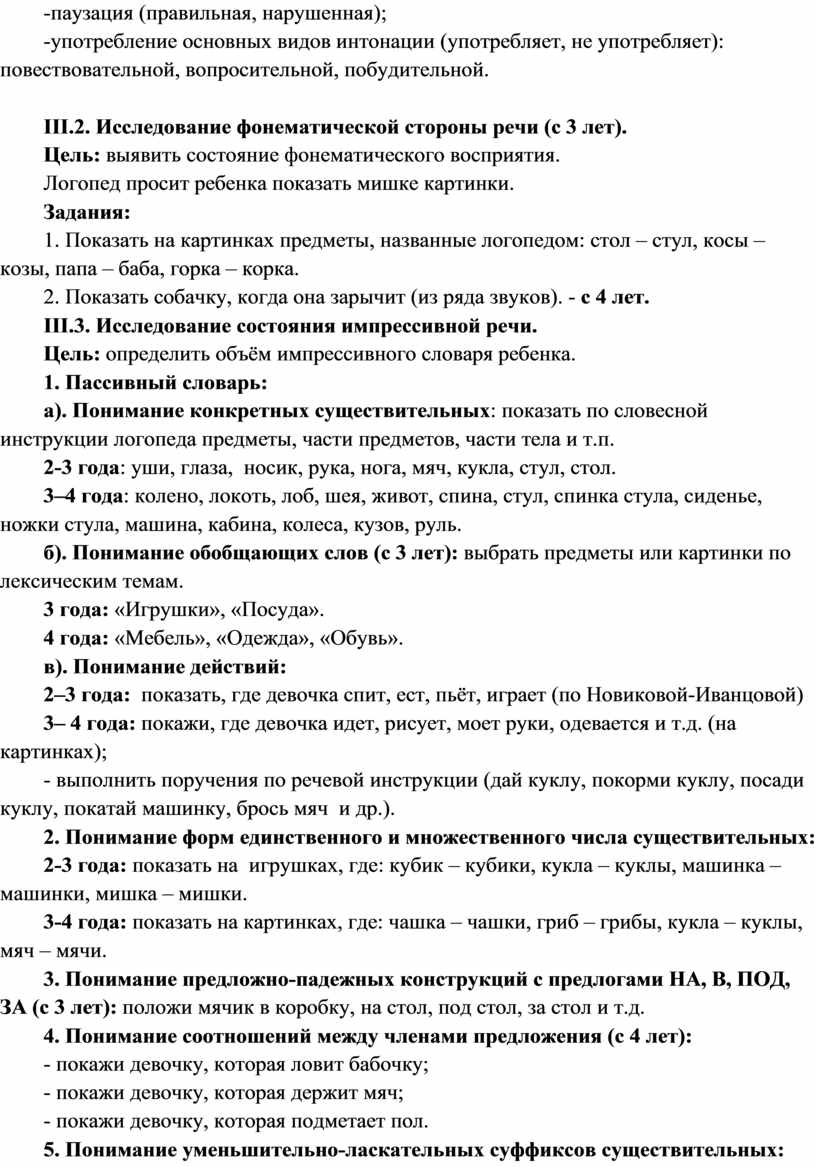 III.2. Исследование фонематической стороны речи (с 3 лет).