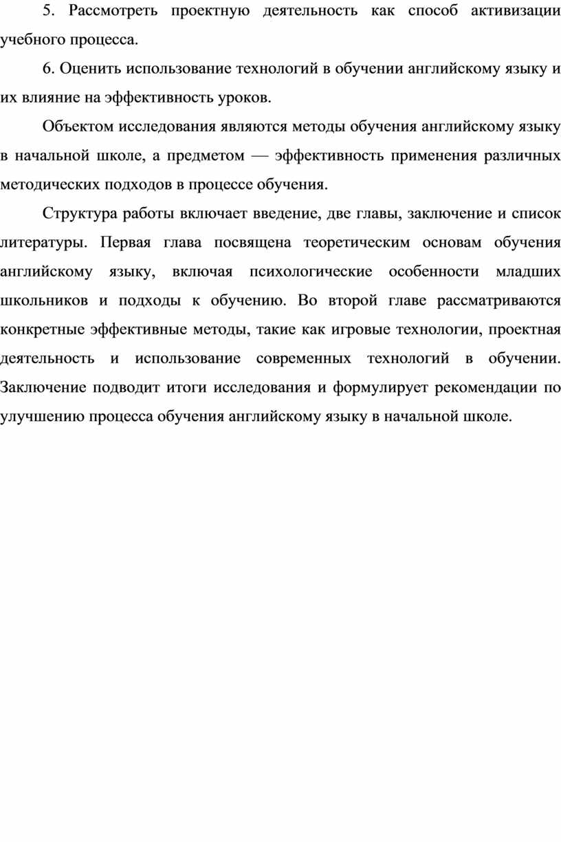 Объектом исследования являются методы обучения английскому языку в начальной школе, а предметом — эффективность применения различных методических подходов в процессе обучения.