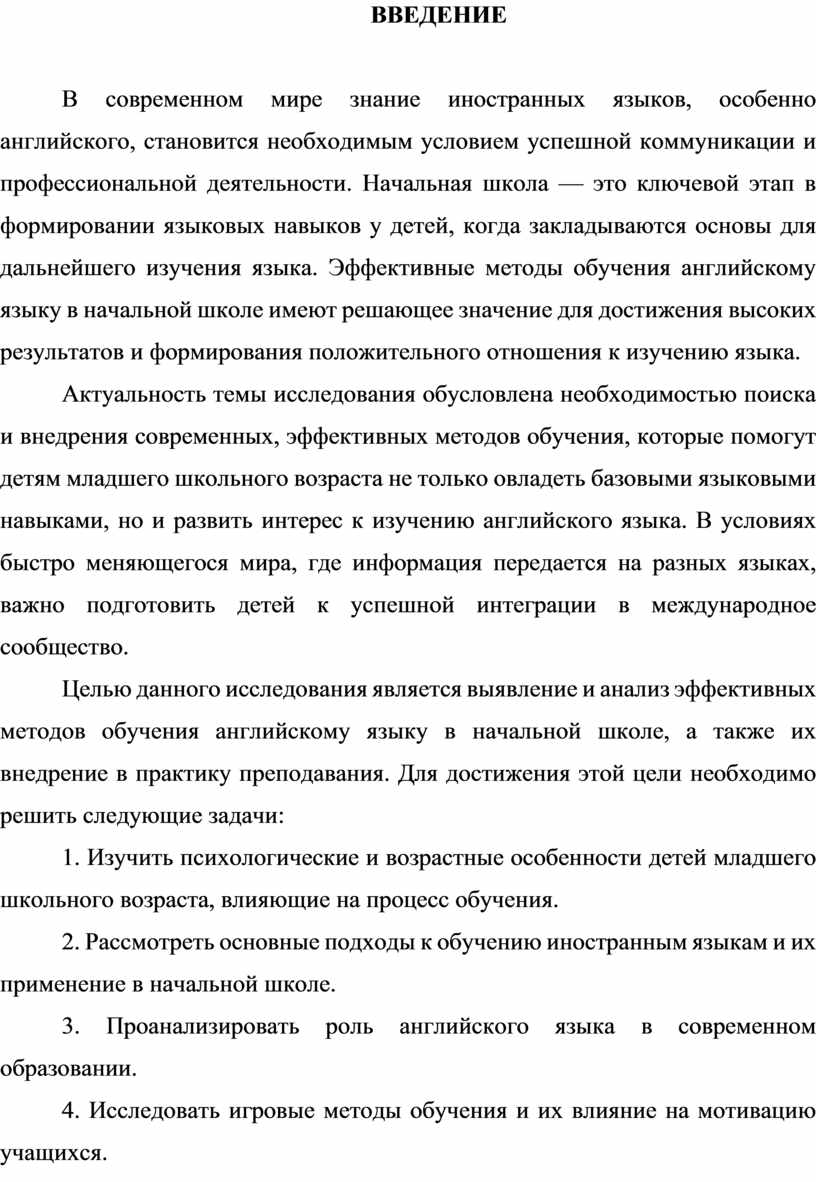 Целью данного исследования является выявление и анализ эффективных методов обучения английскому языку в начальной школе, а также их внедрение в практику преподавания. Для достижения этой цели необходимо решить следующие задачи: