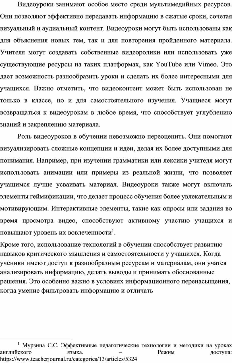 [11] Мурзина С.С. Эффективные педагогические технологии и методики на уроках английского языка. – Режим доступа: https://www.teacherjournal.ru/categories/13/articles/5324