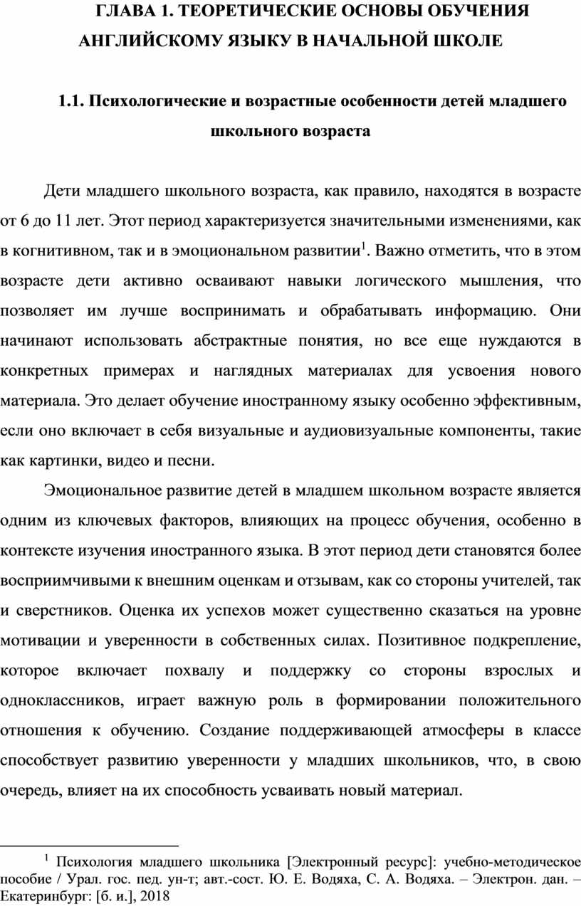 ГЛАВА 1. ТЕОРЕТИЧЕСКИЕ ОСНОВЫ ОБУЧЕНИЯ АНГЛИЙСКОМУ ЯЗЫКУ В НАЧАЛЬНОЙ ШКОЛЕ