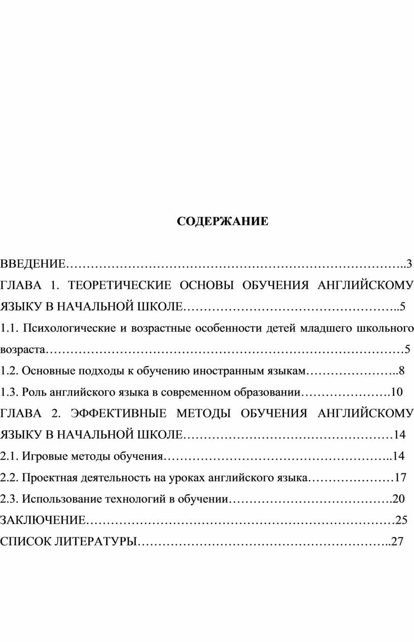 ГЛАВА 2. ЭФФЕКТИВНЫЕ МЕТОДЫ ОБУЧЕНИЯ АНГЛИЙСКОМУ ЯЗЫКУ В НАЧАЛЬНОЙ ШКОЛЕ……………………………………………14