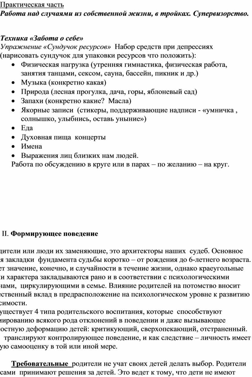 Работа над случаями из собственной жизни, в тройках. Супервизорство.