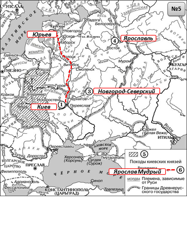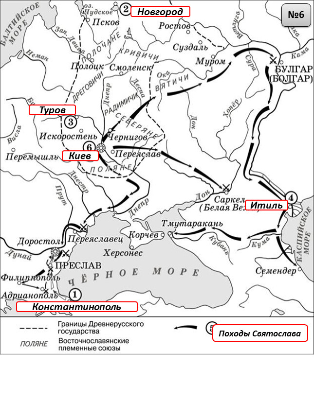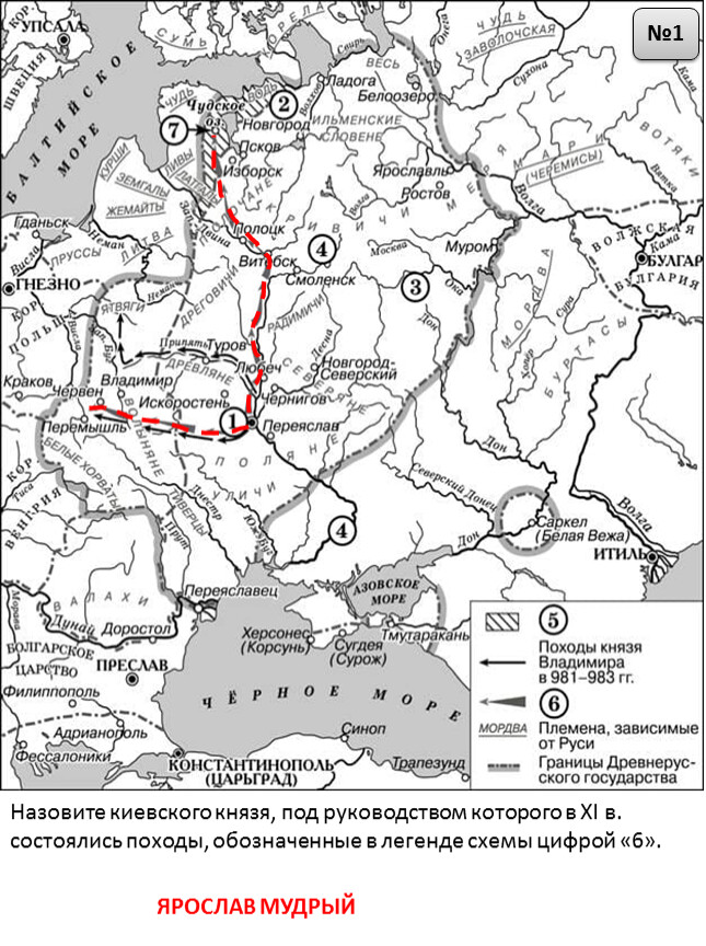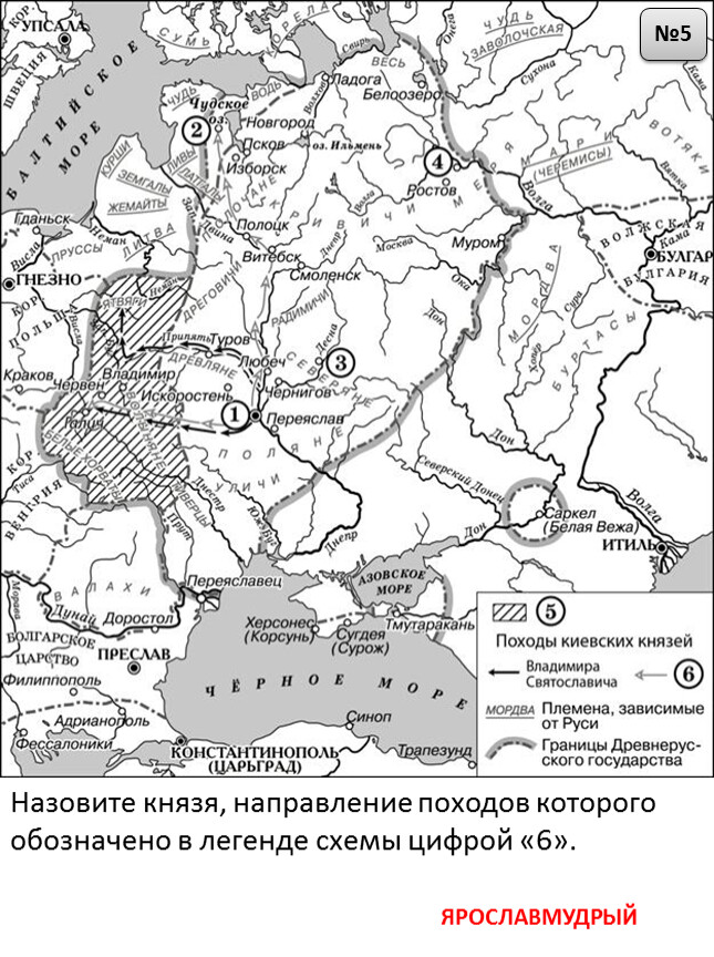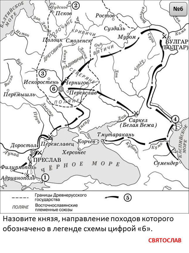Назовите киевского князя, под руководством которого в XI в. состоялись походы, обозначенные в легенде схемы цифрой «6».