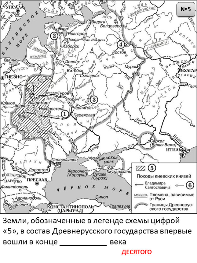 Земли, обозначенные в легенде схемы цифрой «5», в состав Древнерусского государства впервые вошли в конце ___________ века