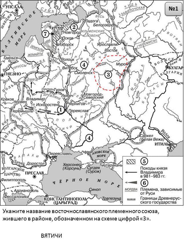 Укажите название восточнославянского племенного союза, жившего в районе, обозначенном на схеме цифрой «3».