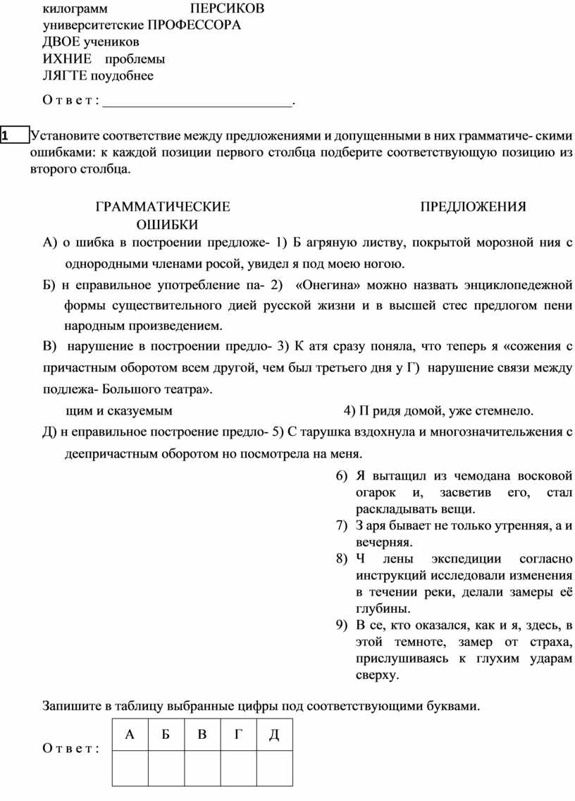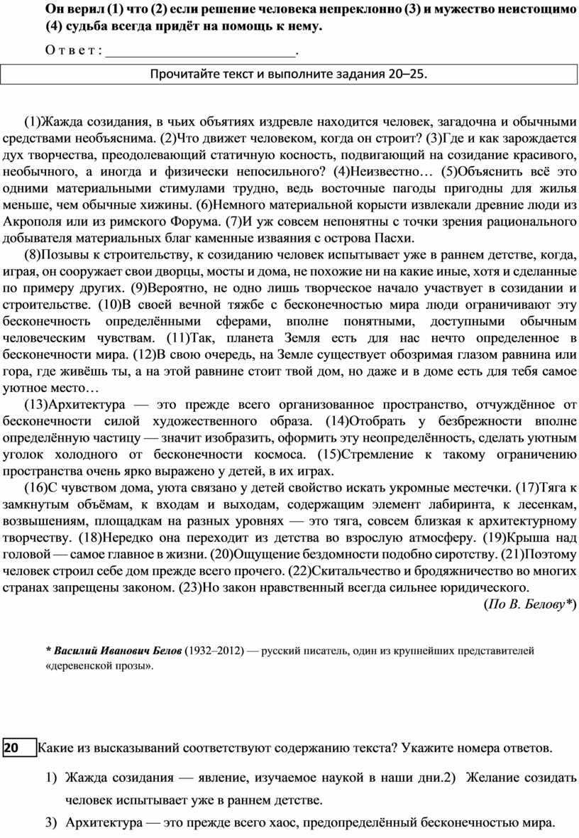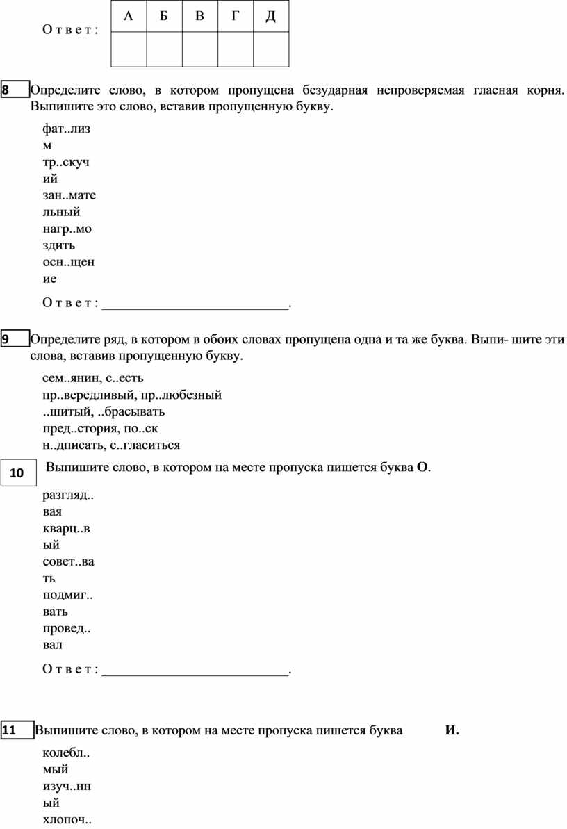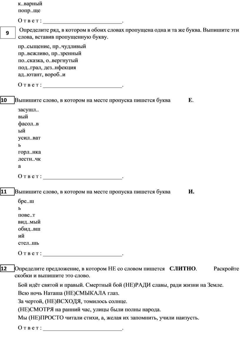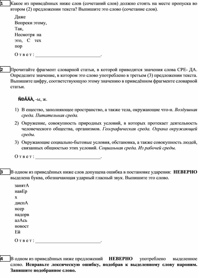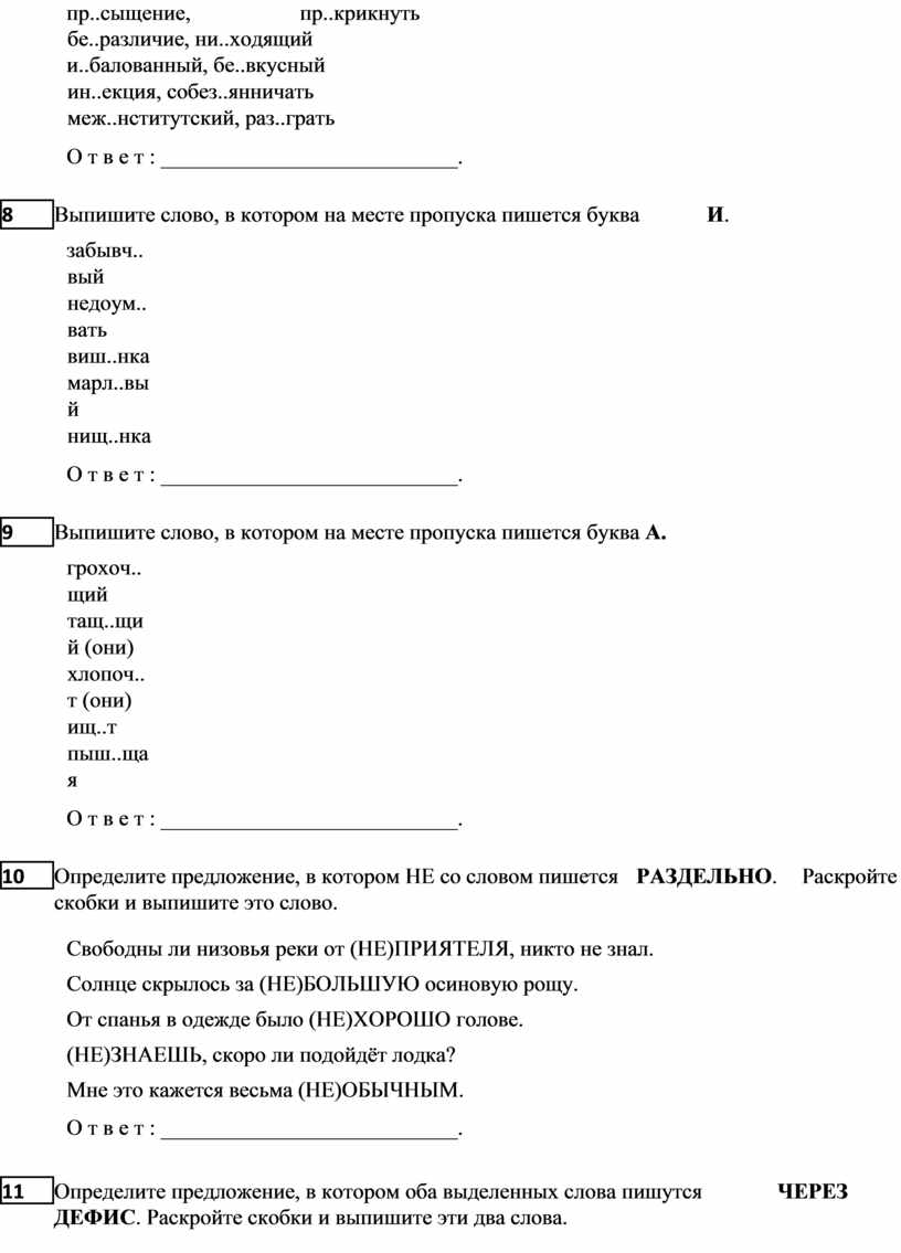 Ответами к заданиям 1–24 являются слово, словосочетание, число или последовательность слов, чисел. Запишите ответ в поле ответа в тексте работы, а затем перенесите в БЛАНК ОТВЕТОВ № 1 справа от номера задания, начиная с первой клеточки, без пробелов, запятых и других дополнительных символов. Каждую букву или цифру пишите в отдельной клеточке в соответствии с приведёнными в бланке образцами.