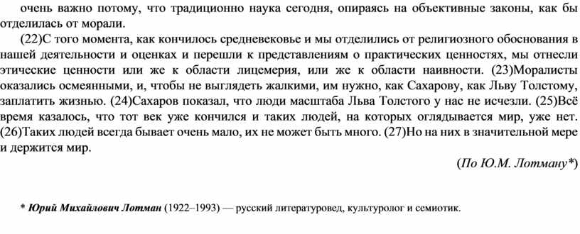 2. Именно гуманитарные науки заставляют задуматься о сердце и разуме человека — того, кто вершит технический прогресс. Вот почему так важно бороться за гуманистические ценности настоящего и будущего, поддерживать культурный фронт. |