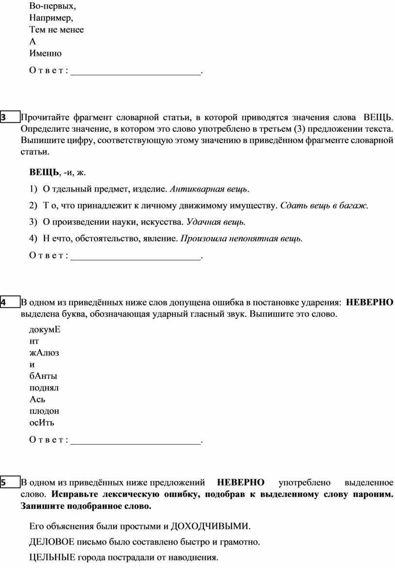 3 Прочитайте фрагмент словарной статьи, в которой приводятся значения слова ВЕЩЬ. Определите значение, в котором это слово употреблено в третьем (3) предложении текста. Выпишите цифру, соответствующую этому значению в приведённом фрагменте словарной статьи.