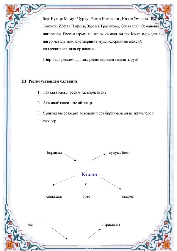 Аталар сезлерини , янъы сезлерни эзберлемек. Къырымтатар рессамлары