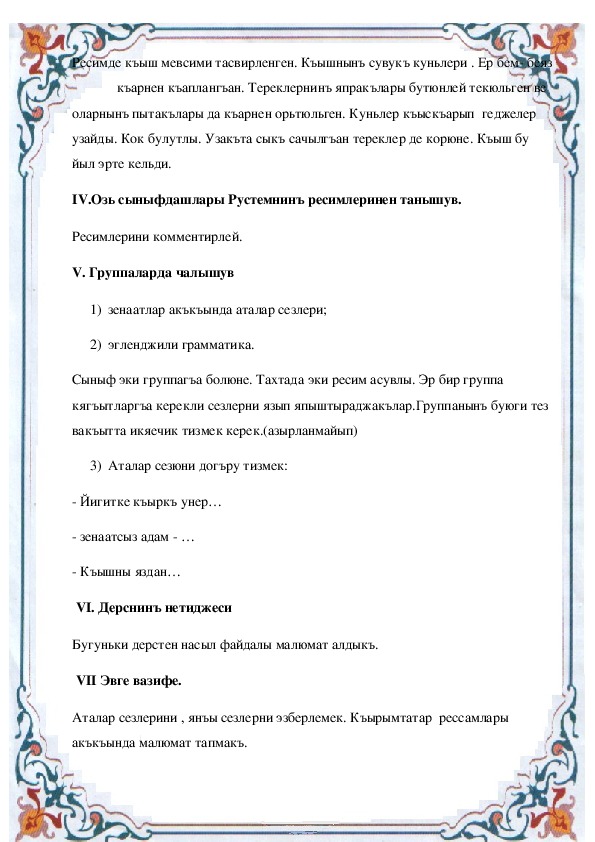 3. Къыш эрте кельди . Куньдюз серин ельчик эсти