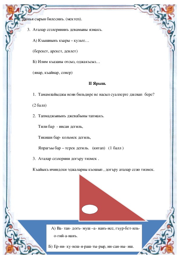 Пара бермей киресинъ,Дюнья сырын билесинъ. (мектеп).