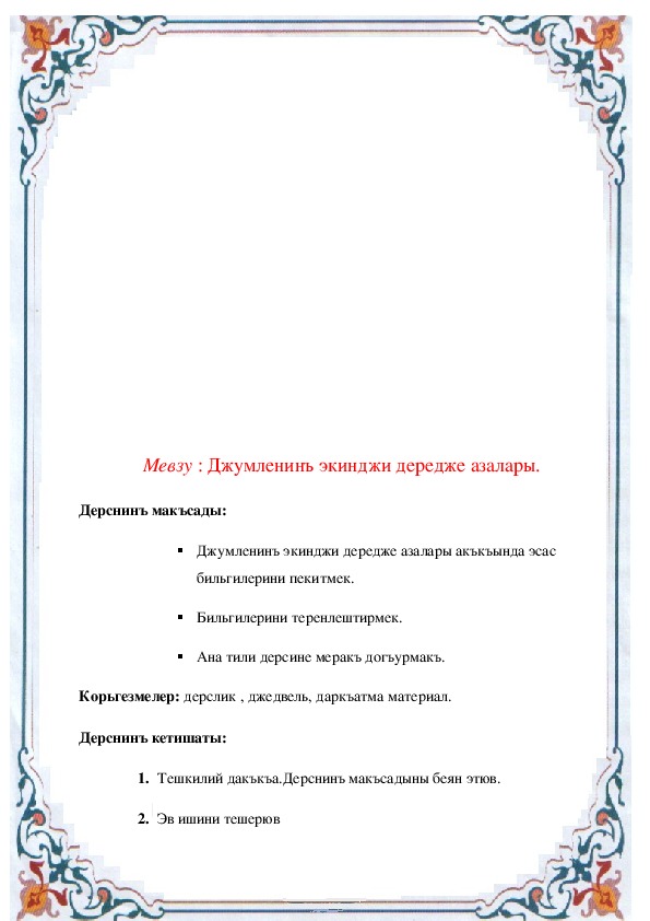 Мевзу: Джумленинъ экинджи дередже азалары.
