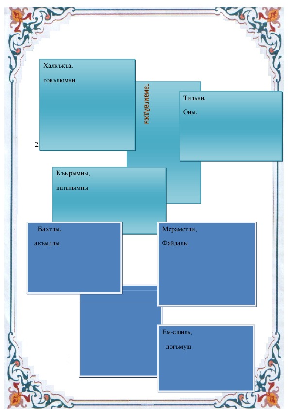 2. Аталар сезлерининъ сонъуны сагъ тарафтан тапынъыз.