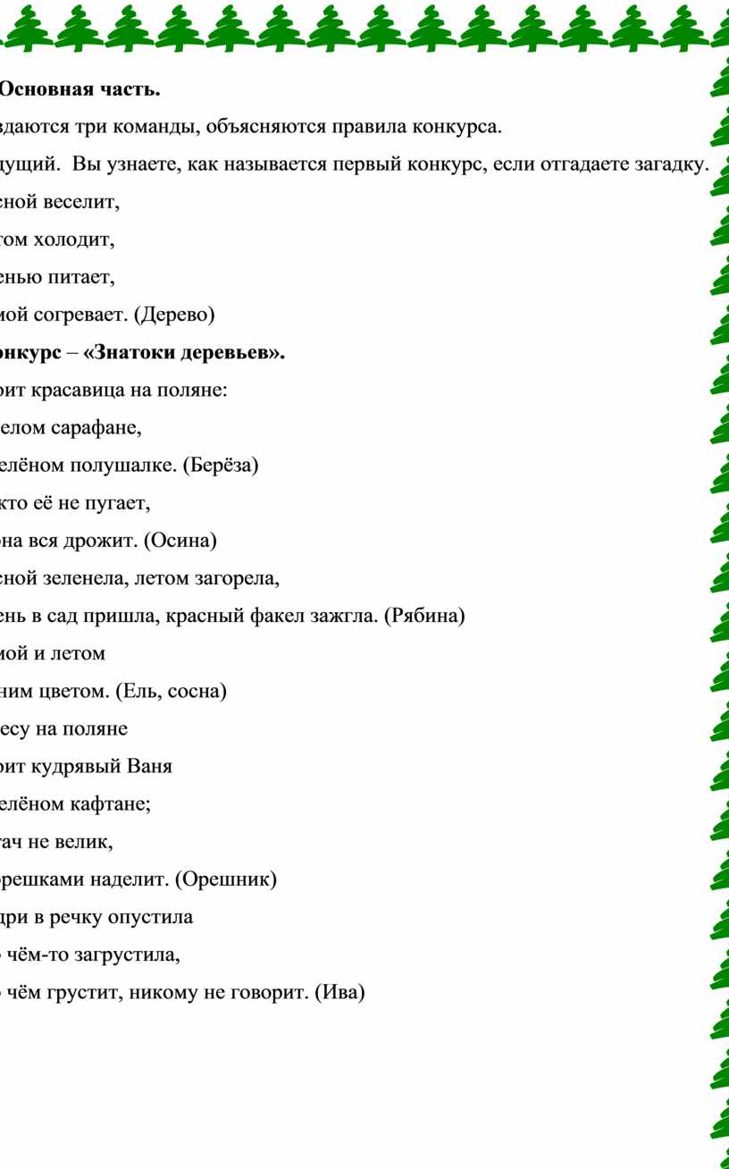 1конкурс – «Знатоки деревьев».
