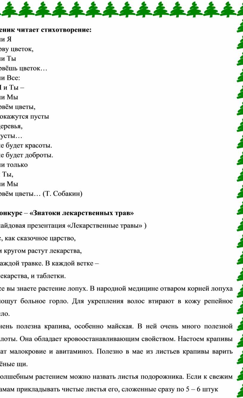 4 конкурс – «Знатоки лекарственных трав»