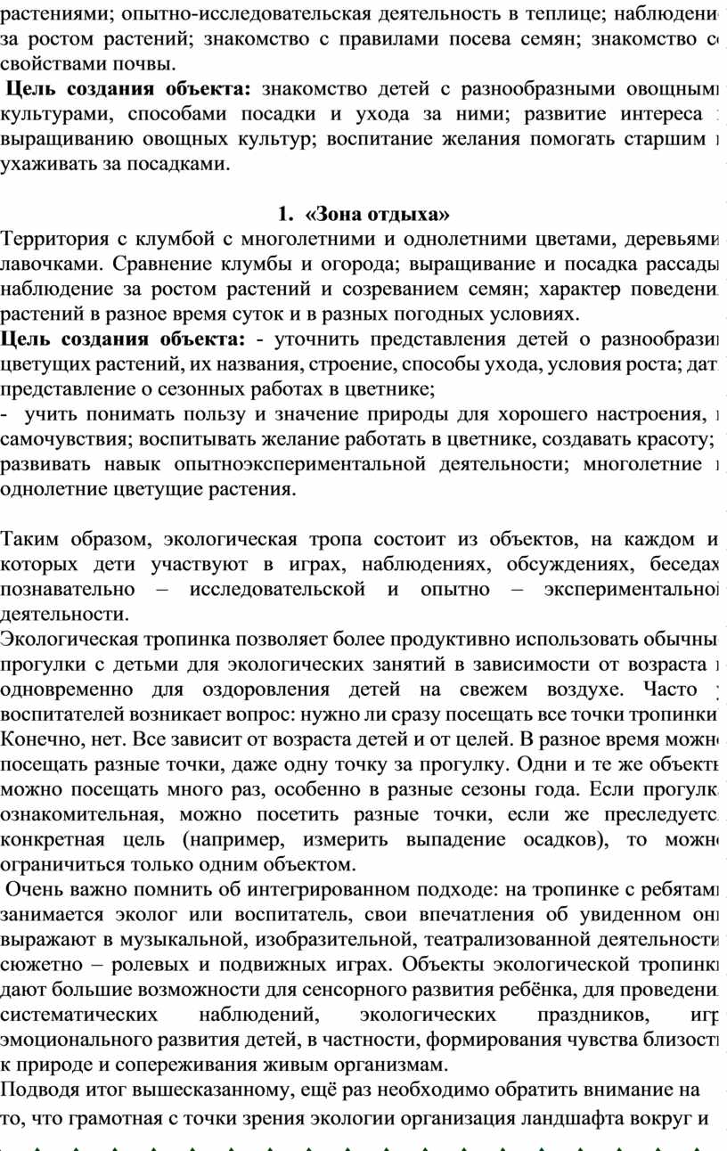 «Экологическая тропа в детском саду» по экологическому воспитанию детей дошкольного возраста»