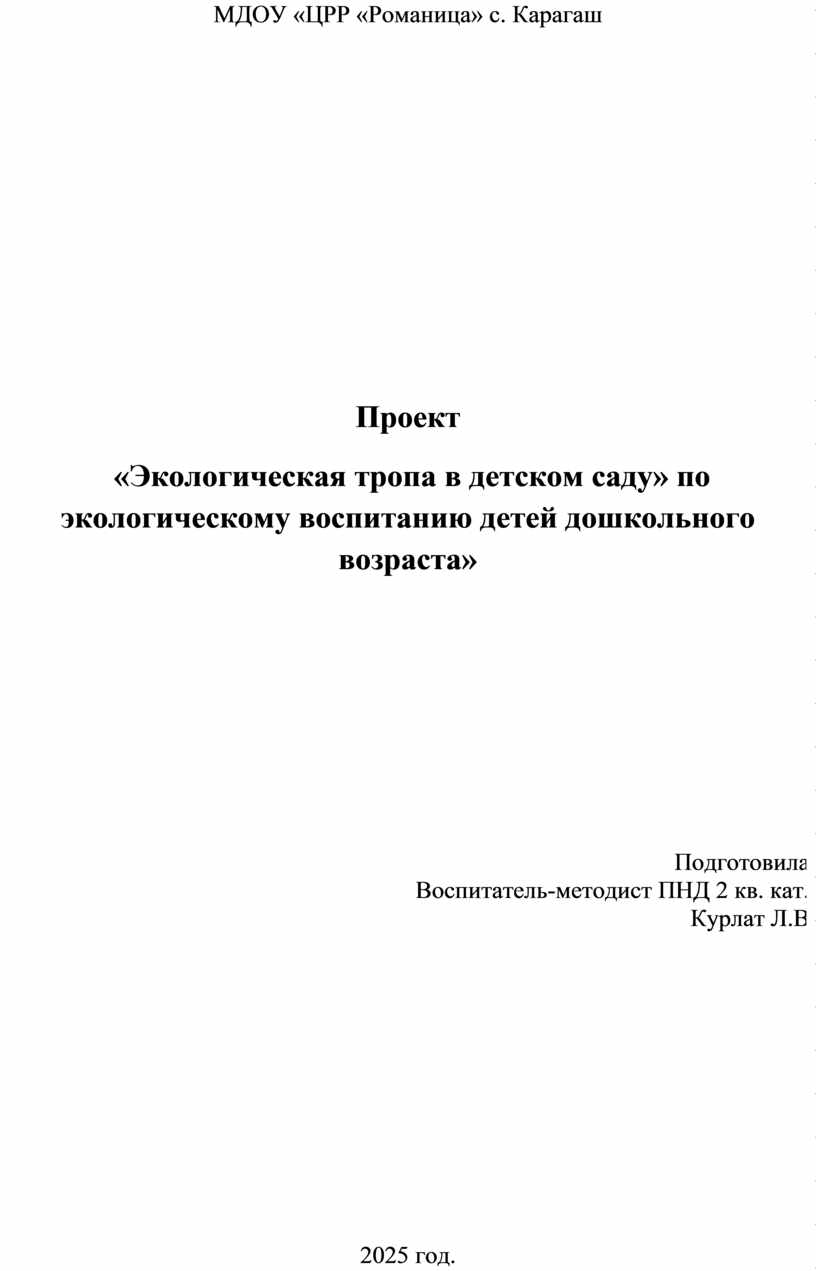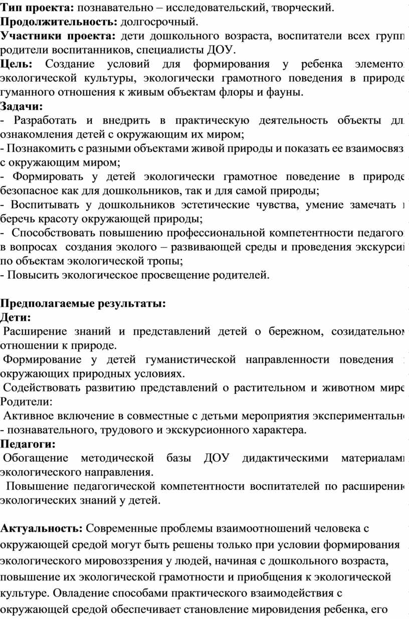 Актуальность: Современные проблемы взаимоотношений человека с окружающей средой могут быть решены только при условии формирования экологического мировоззрения у людей, начиная с дошкольного возраста, повышение их экологической грамотности и приобщения к экологической культуре. Овладение способами практического взаимодействия с окружающей средой обеспечивает становление мировидения ребенка, его личностный рост. При ознакомлении детей с природой открываются возможности для эстетического, патриотического, нравственного воспитания. Общение с природой обогащает духовную сферу человека, способствует формированию положительных качеств. Проведение собственных исследований, наблюдений позволяют обобщать, анализировать и способствовать экологически грамотному, безопасному для природы и собственного здоровья поведению. Формирование экологического сознания, экологической культуры мировоззрения личности в целом должна стать первостепенной задачей экологического образования и воспитания.