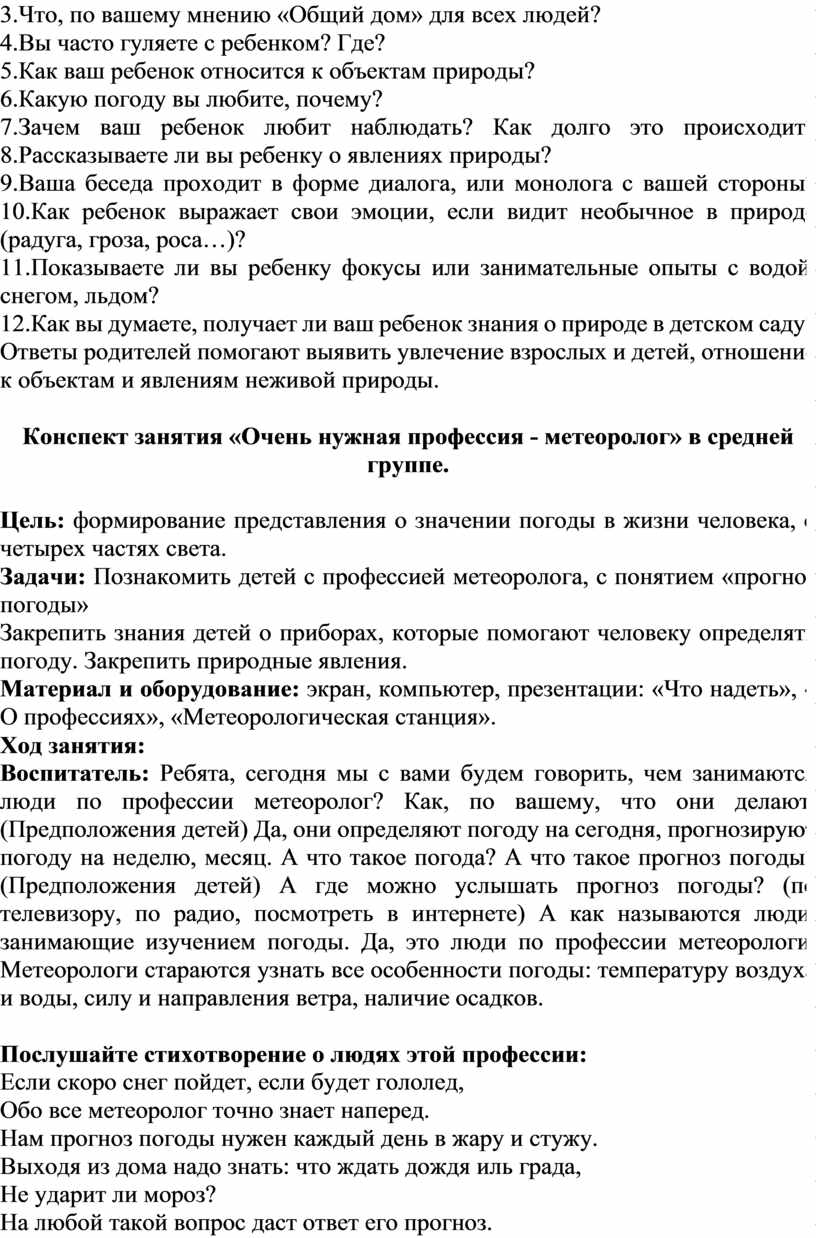 Ответы родителей помогают выявить увлечение взрослых и детей, отношение к объектам и явлениям неживой природы.