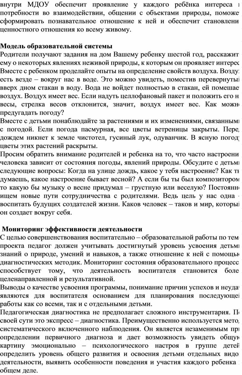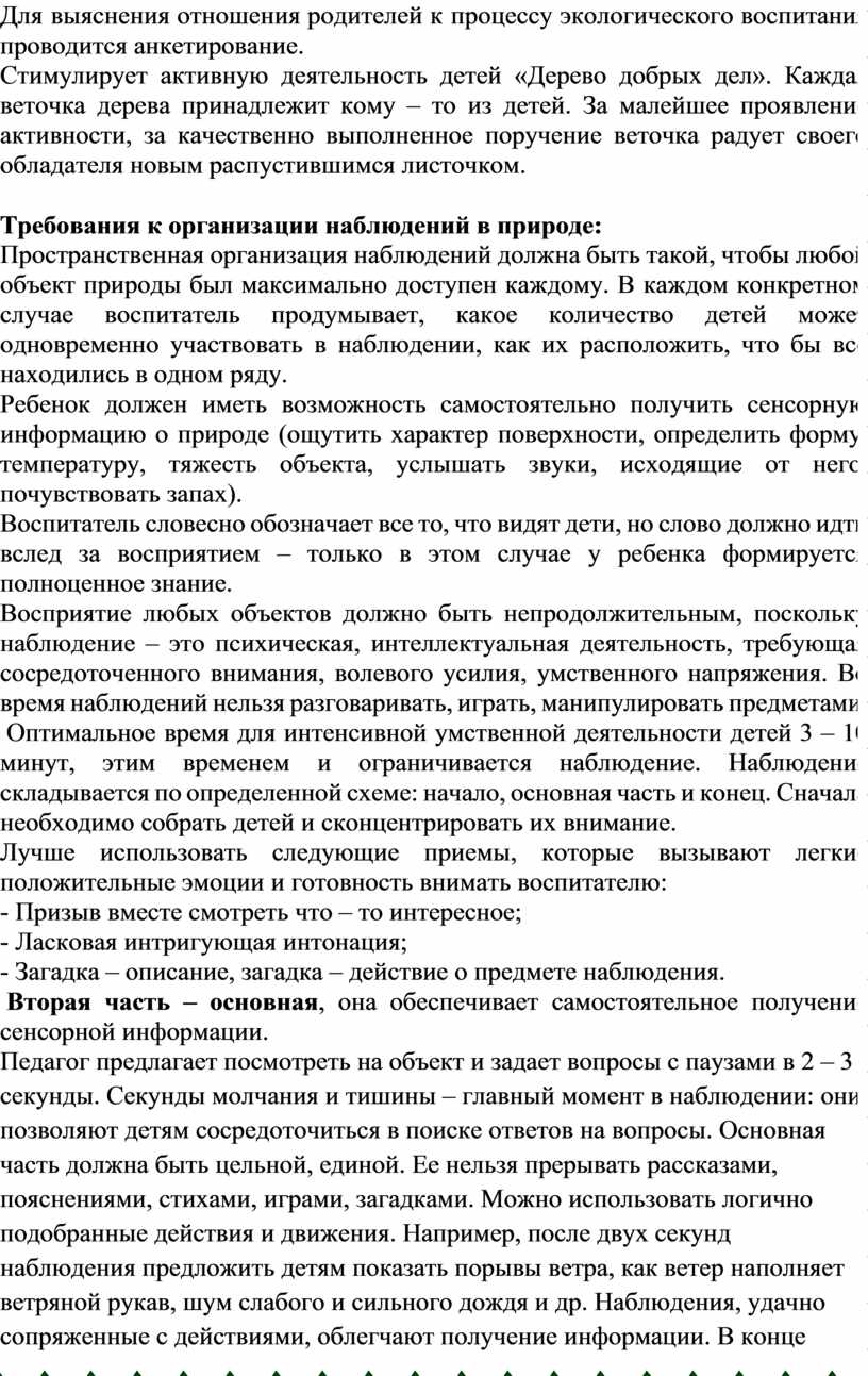 - Консультирование родителей по теме проекта («Экологическое воспитание дошкольников», «Экологическое воспитание дошкольников в семье»).