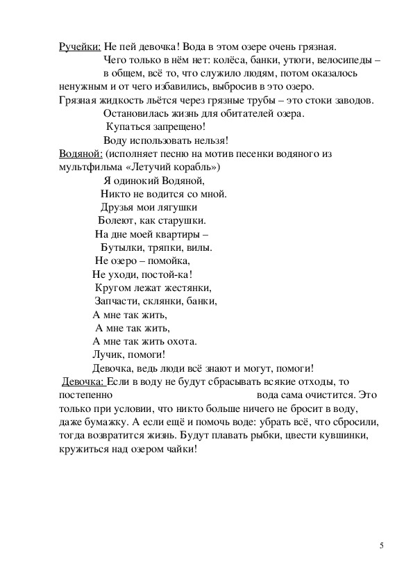 Девочка: Если в воду не будут сбрасывать всякие отходы, то