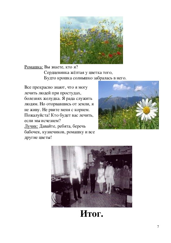 утренника или на уроке, взяв элементы сказки по разделам: «Лес», «Луг»,