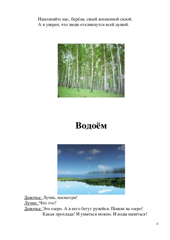 Девочка: Это озеро. А в него бегут ручейки. Пошли на озеро!