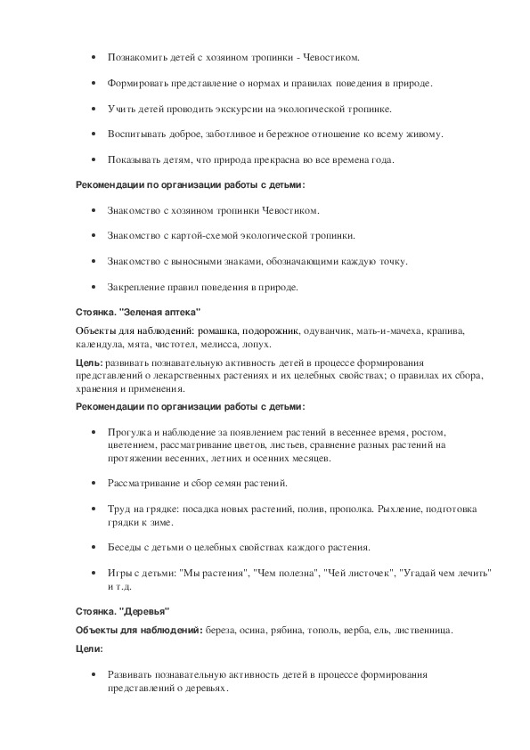 Общие рекомендации по работе с детьми на экологической тропинке детского сада: