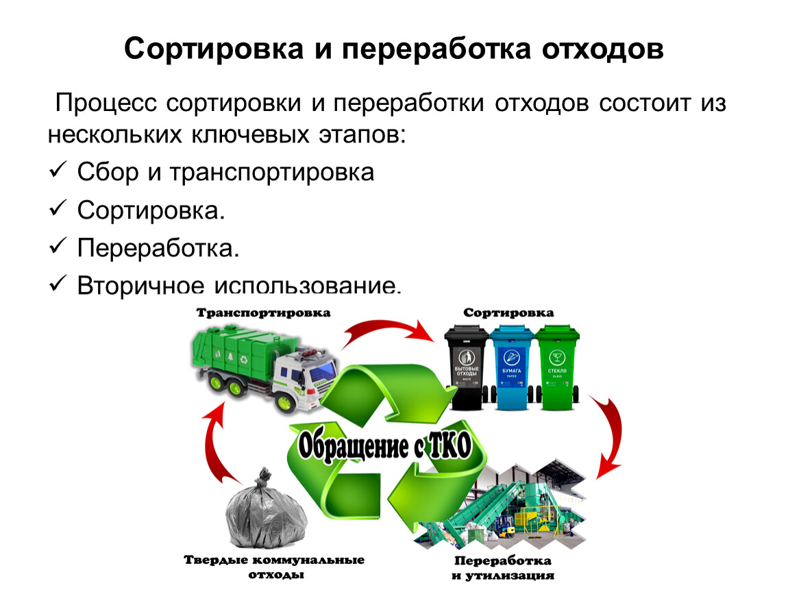 Процесс сортировки и переработки отходов состоит из нескольких ключевых этапов: